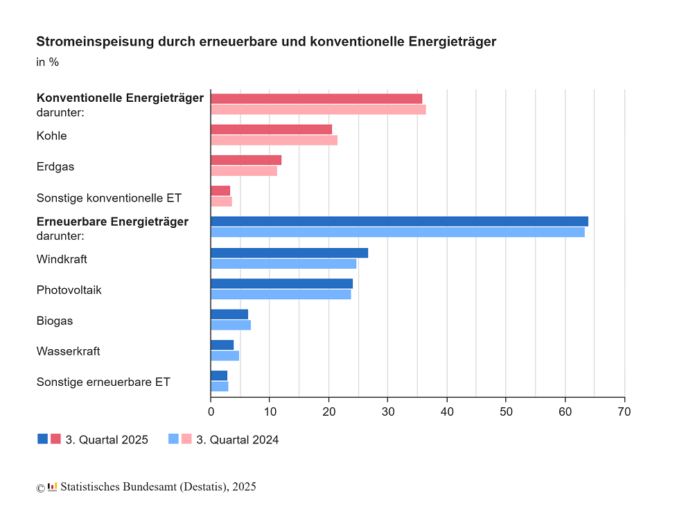 Die Preise für Energieprodukte lagen im November 2025 um 0,1 % niedriger als im Vorjahresmonat. Der Preisrückgang bei Energie hatte im Oktober 2025 bei -0,9 % gelegen. Von November 2024 bis November 2025 verbilligte sich die Haushaltsenergie um 1,2 %. Insbesondere konnten die Verbraucherinnen und Verbraucher von günstigeren Preisen für Strom (-1,5 %) und Fernwärme (-0,7 %) profitieren. Teurer unter der Haushaltsenergie waren hingegen zum Beispiel leichtes Heizöl (+2,4 %) und Erdgas (+0,5 %). Die Kraftstoffpreise erhöhten sich gegenüber November 2024 um 1,6 %.