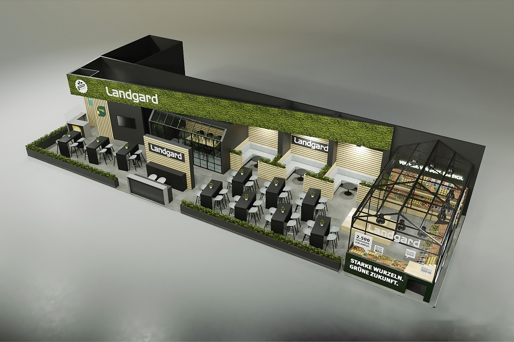 Vorschau auf den Landgard-Messestand bei der Fruit Logistica in Halle 20, Stand B-11 (Stand: Dezember 2025)
