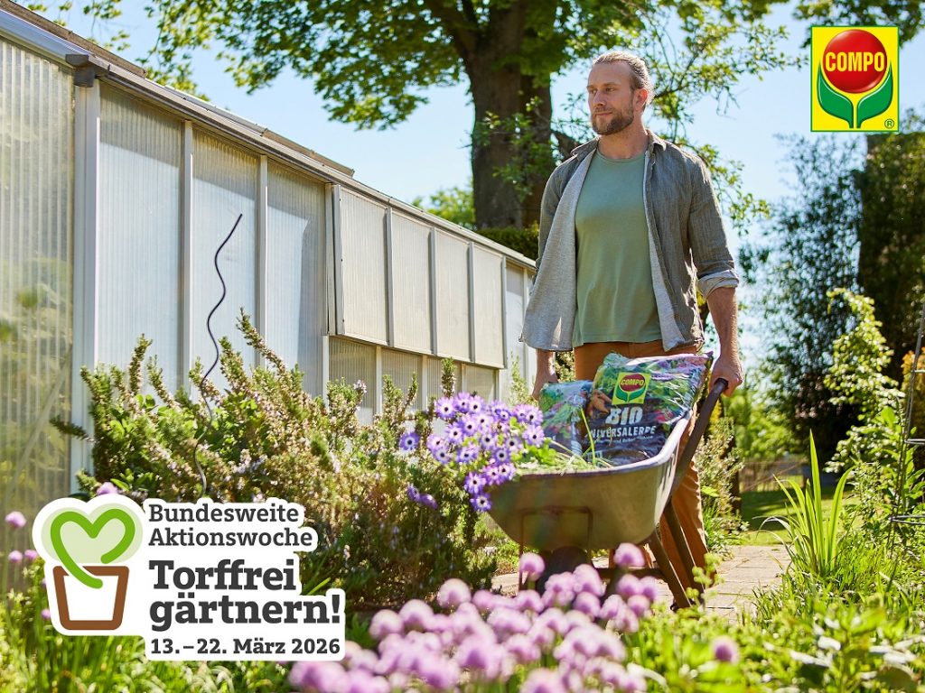 Bereits zum dritten Mal findet vom 13. bis 22. März 2026 die bundesweite Aktionswoche „Torffrei gärtnern“, kurz BATG, statt. Dann rücken das Bundesministerium für Ernährung und Landwirtschaft und die Fachagentur Nachwachsende Rohstoffe e.V. erneut die Bedeutung torffreier Substrate für Klima- in den Fokus. COMPO ist, wie bereits 2025, Kooperationspartner und unterstützt die gemeinsam formulierten Ziele mit einem Maßnahmenpaket für Endverbraucher, Handel und Medien.